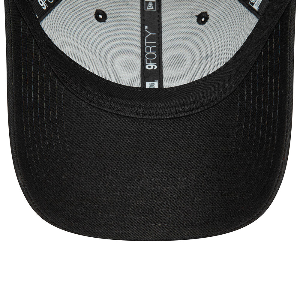 Eine schlanke, schwarze New Era 9FORTY-Kappe mit strukturierter Krone und gebogenem Schild. Diese verstellbare Cap bietet eine sichere, universelle Passform mit einem Rückband und belüfteten Ösen für ganztägigen Tragekomfort. Ihr minimalistisches, makelloses Design macht sie perfekt für legere Alltagskleidung, Sport und Streetstyle.